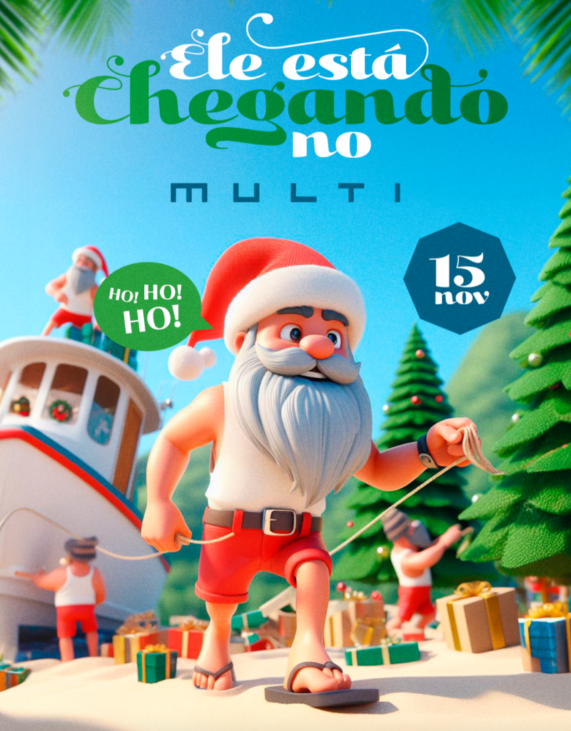 O bom velhinho, num look totalmente tropical, chega no boulevard do MULTI no feriado do dia 15 de novembro. A partir das 15h haverá uma programação toda especial para a Chegada do Papai Noel. Acompanhe mais informações nas redes sociais e aqui no site do MULTI.